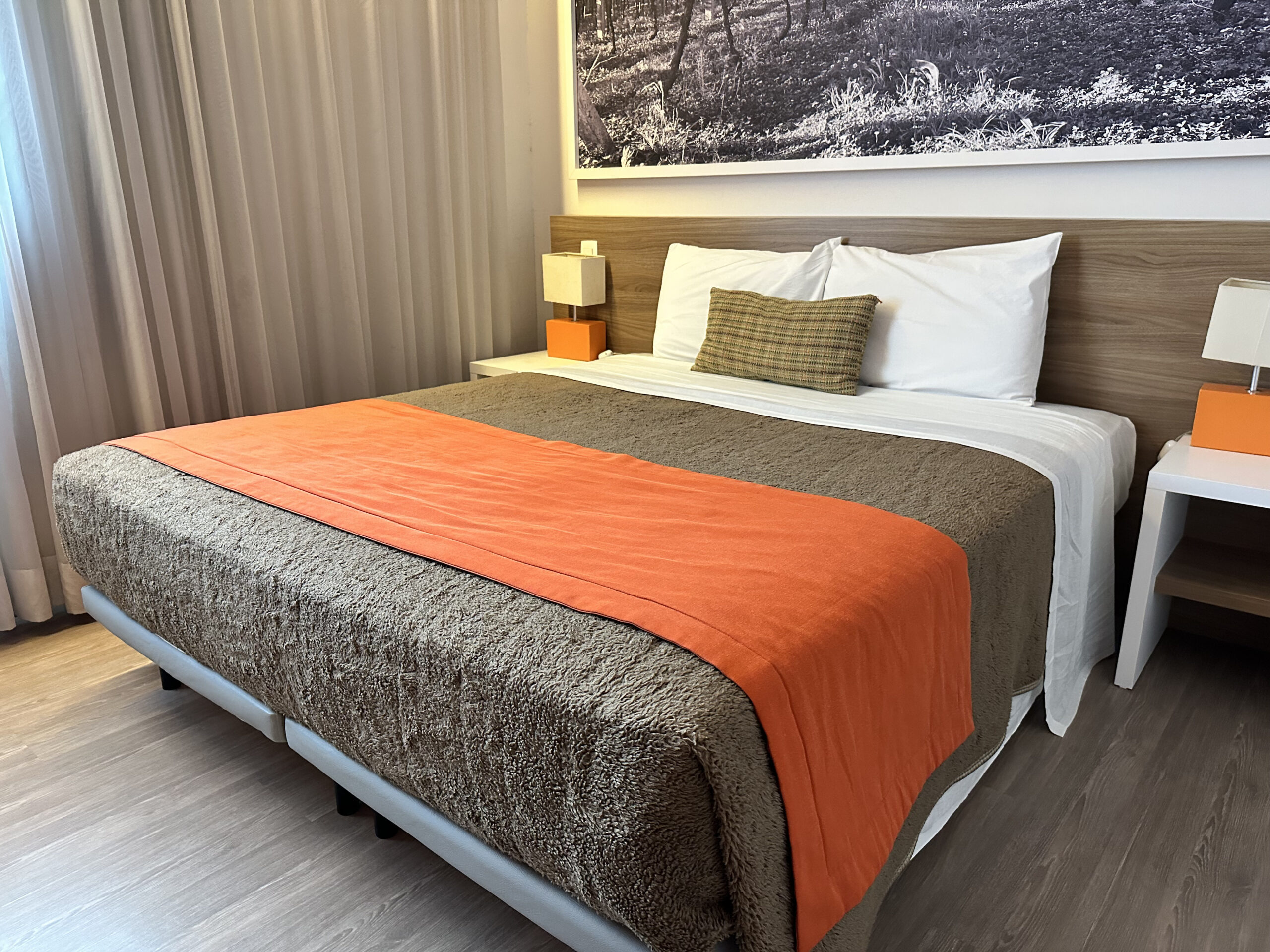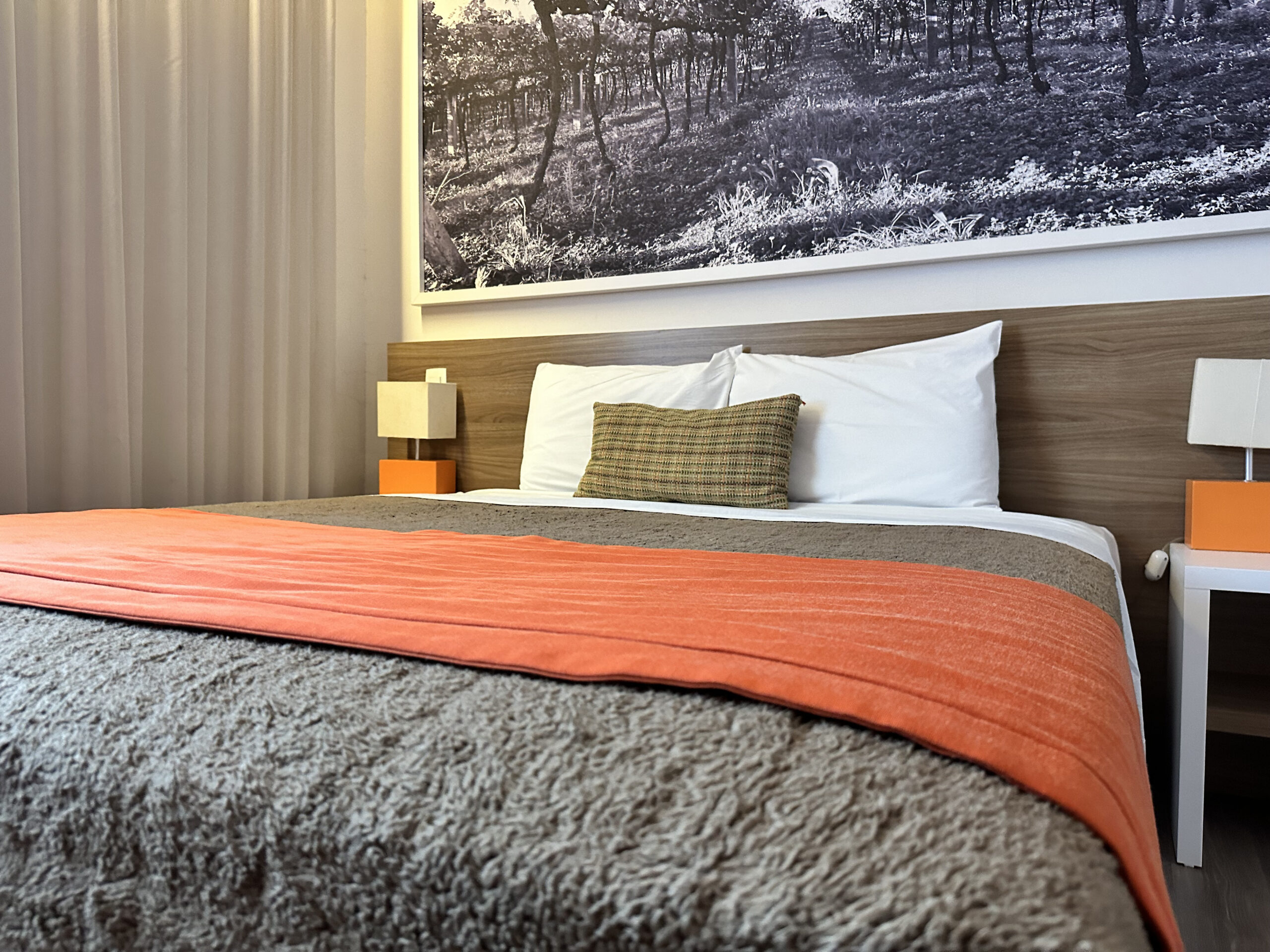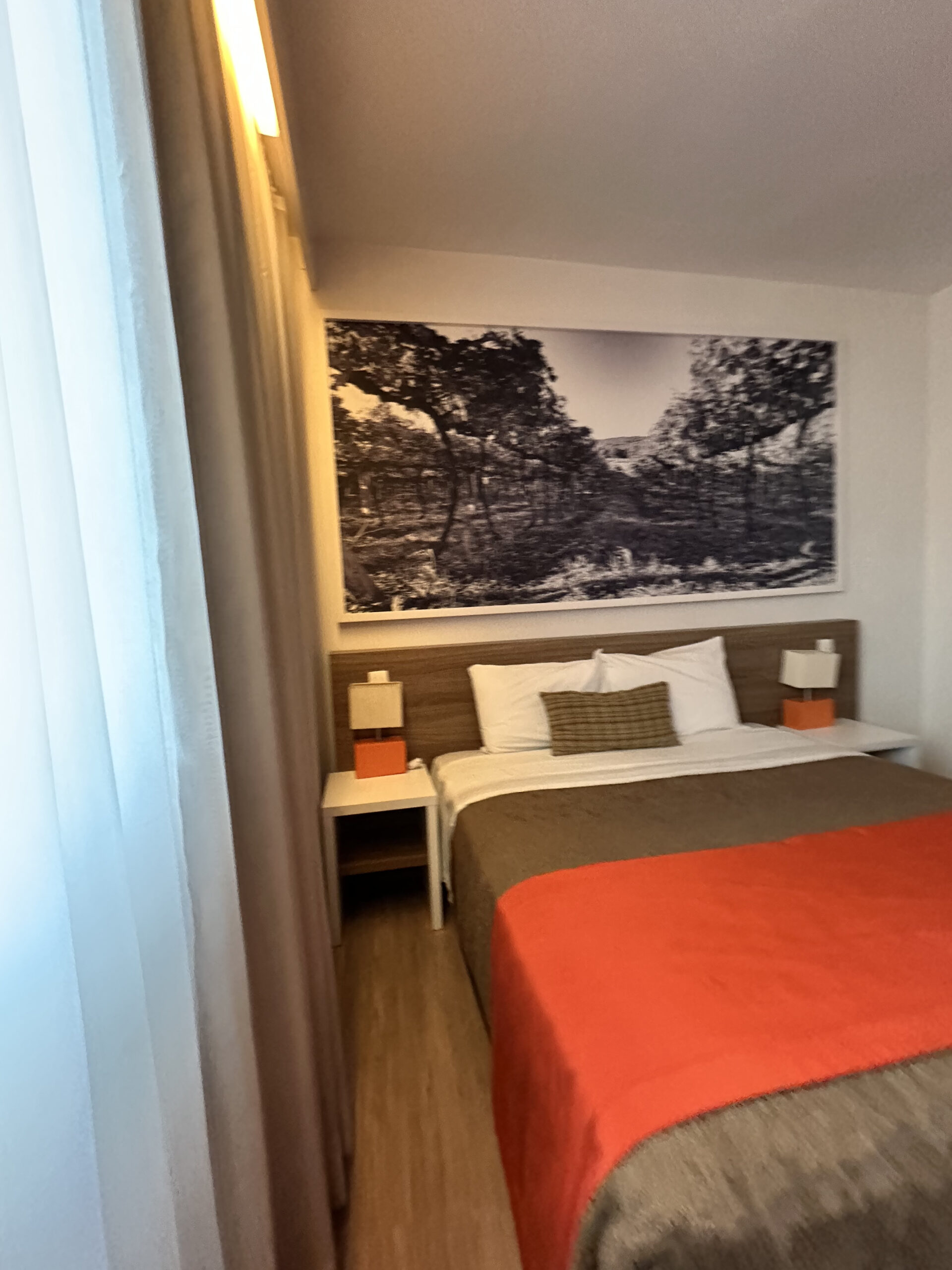 Acomodações confortáveis com cama de casal ou duas de solteiro, roupa de cama macia e ambiente climatizado. Possui TV, Wi-Fi gratuito, frigobar e mesa de trabalho. O banheiro privativo conta com chuveiro, toalhas e itens básicos de higiene. Ideal para quem busca praticidade e tranquilidade durante a estadia.